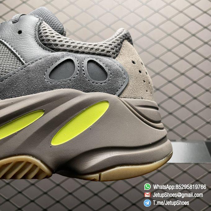 Best Replica Yeezy Boost 700 ‘Mauve’ Sneaker SKU EE9614 Top Quality Yeezy RepSneakers  — The Yeezy Boost 700 ‘Mauve’ takes on a somber color scheme that blends black and purplish grey across its signature multi-layered upper. The complex arrangement sees different varieties of mesh complemented with suede and textured leather paneling, all resting upon a tonal sculpted midsole accented with pops of neon green. Exterior branding is limited to subtly visible Three-Stripes on the quarter panel and an adidas logo embossed on the outsole.
